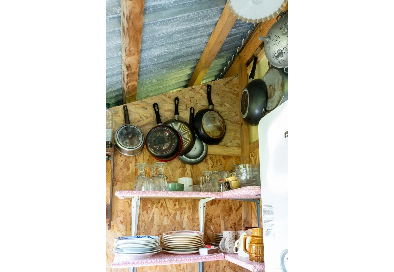 Pratique, elle est équipée de douche, toilette et lavabo… Il y a aussi un coin cuisine avec tout le nécessaire pour faire la popote !