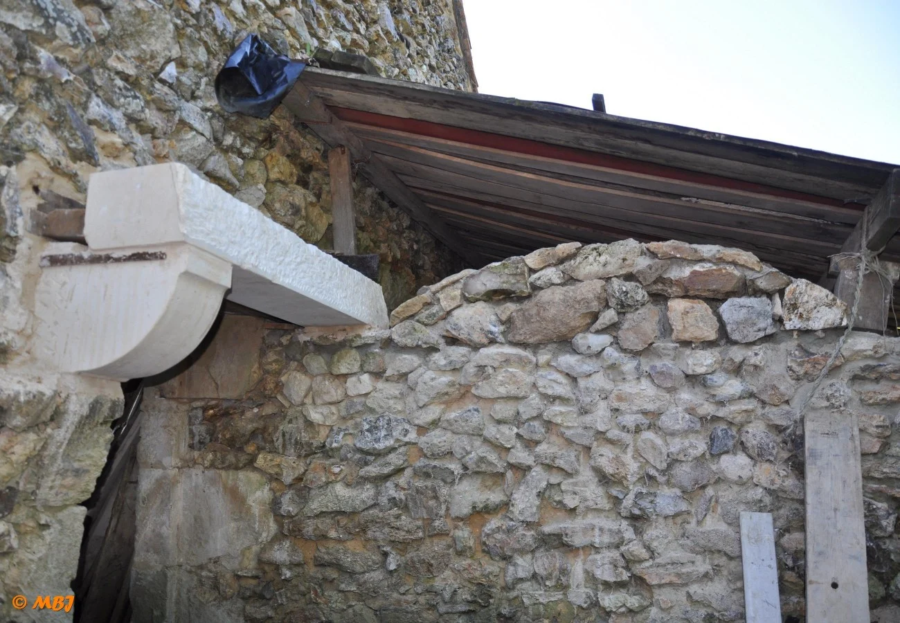 Elle est posée sur une vingtaine d’étais. La construction est alors réalisée à partir de pierres retaillées ou retrouvées sur place. Elles sont montées à la chaux. Un linteau en pierre est réalisé ainsi qu’une corniche pour maintenir la voûte sur le dessus de la porte.