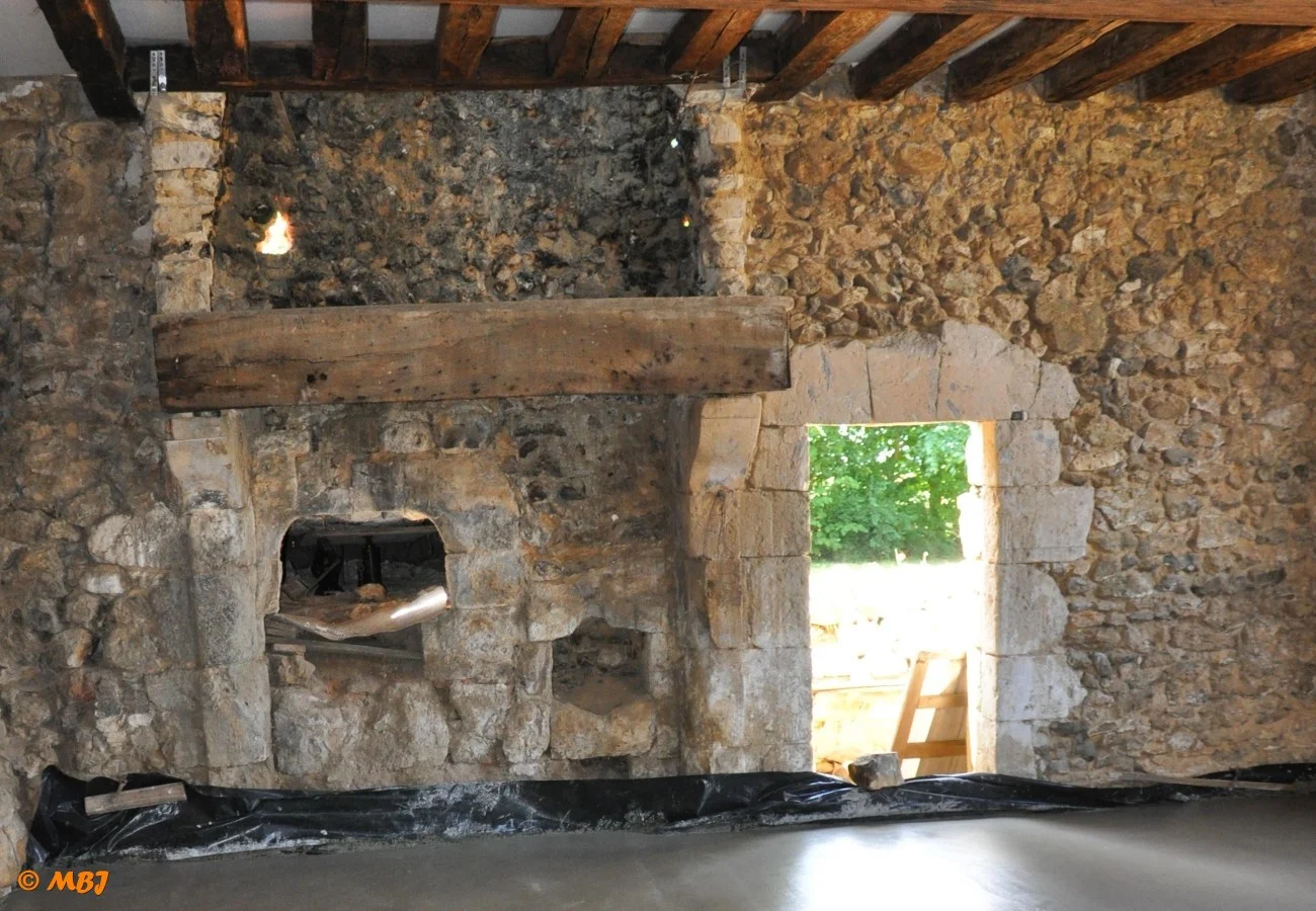 En 2012, après avoir refait les planchers et installé le chauffage au sol, il est urgent de restaurer cette grande cheminée… Petit-à-petit, les pierres son démontées pour être maçonnées à nouveau. L’âtre est prêt pour accueillir le poêle à bois !